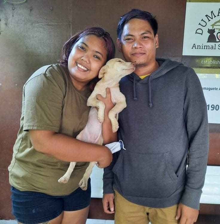 One of four puppies abandoned in March 2022, Lemon was adopted today by Jessa, Erwin, and Angelie.  All four pups had Parvovirus, so spent their isolation time away from other dogs until they tested clear.  They seem to have no lingering problems, and Lotus, Lacey and Lexi are all waiting their turn!  Check out our dogs ready for adoption here.