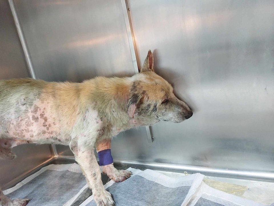 Hero was a hit and run rescue on 22 July 2023.  He was an old dog, maybe 10-12 years old, and initially we thought his medical problems were caused by the vehicle accident, but Animal Wellness vets showed severe malnutrition and moderate anemia, possible chronic infection in the body (suspected blood parasitism based on the increased TP, globulin and monocytosis), as well as a previously healed fracture on the right hindlimb which was causing him to limp.  Neurological signs like wobbling, droopy eyes and imbalance initially pointed to the potential for a head injury