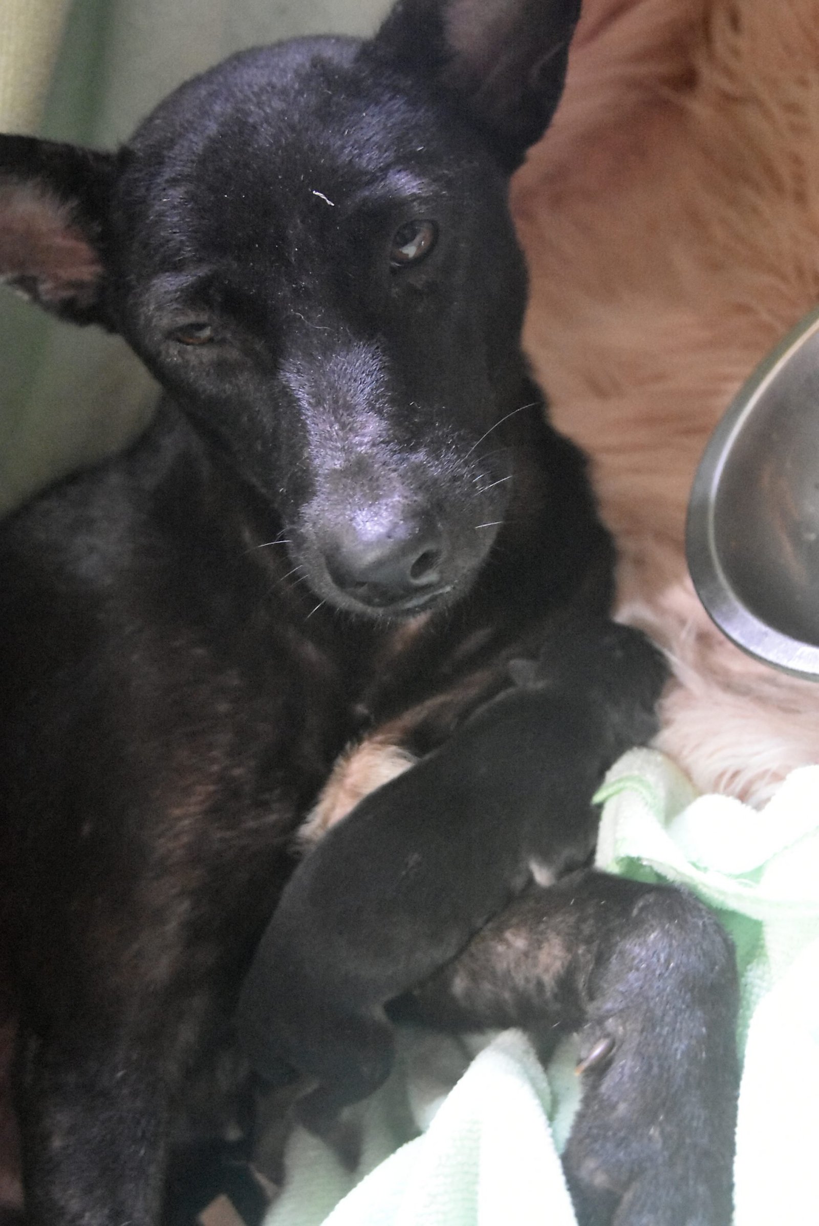 When we rescued Elsie, we had no idea that she was pregnant as she was so very thin. Then she shocked us all by suddenly going into labour. Only one puppy survived: Tesha.