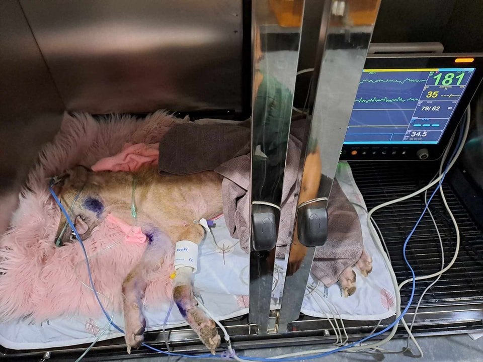 We ran a battery of tests on Steel and discovered he was in kidney failure, as he was vomiting and pooping blood. Sometimes the situation resolves itself in around 3 days, so we continued to care for him hoping for the best. We had him on oxygen, IV and medications and hooked up to the vital signs monitor with a vet assistant monitoring him 24/7, with virtual support from Isabela Vets.