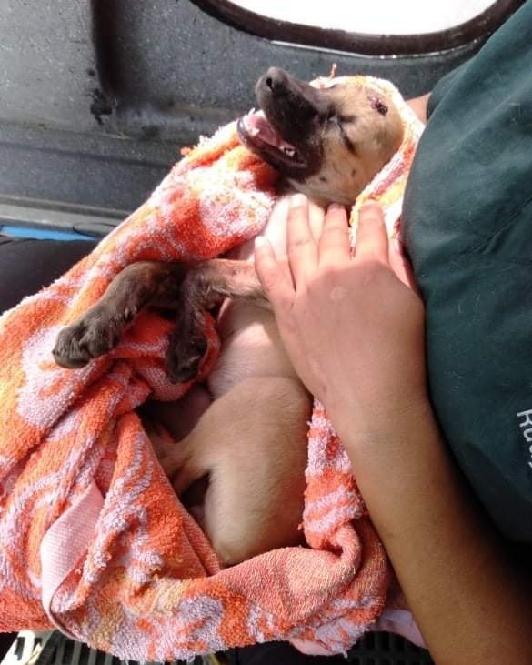 On 5 April 2022 we got a report from someone who had clearly tried their best to help a puppy that was hit by a vehicle in the Estancia Subdivision in Sibulan. She was covered with a blanket, and had been trying to hydrate her through a syringe. We can't carry the burden of every neglected, abused, injured or sick stray here in Dumaguete, but we simply couldn't let this one go.