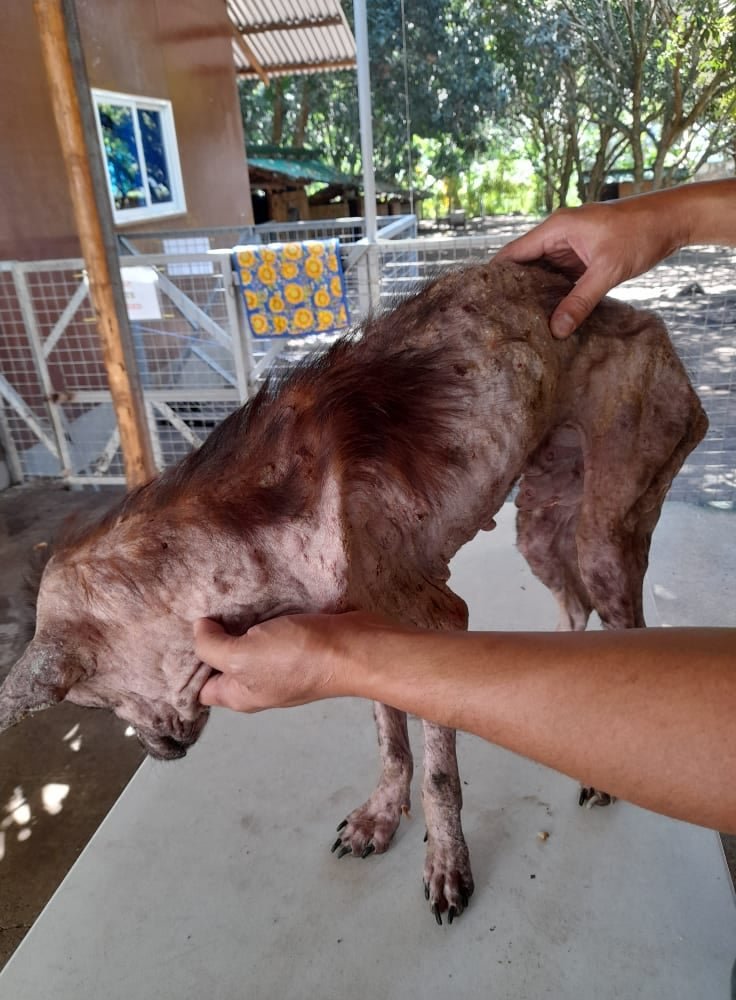 He had multiple tumours and clearly had TVT, which is very treatable. He was old, had mange, and was malnourished, but we had hope. Within a couple of chemo treatments, his tumours began to subside, and he began to enjoy his surroundings, and the care and attention he was receiving from staff.