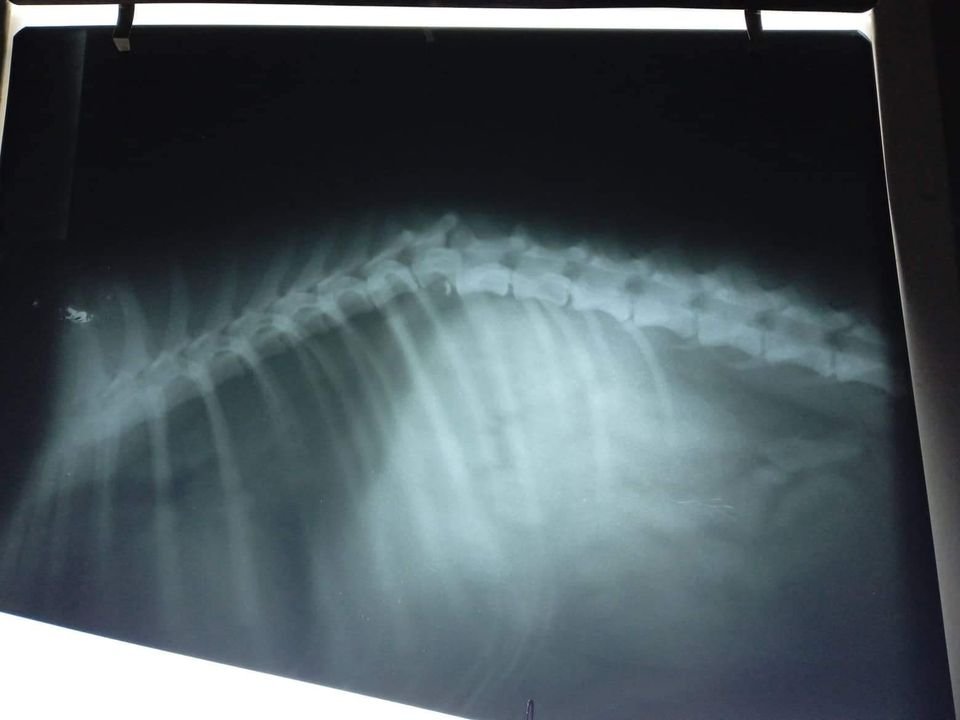 We did multiple xrays and there are no broken bones in her limbs but there is a misalignment in her spine at around the 10th vertebrae.