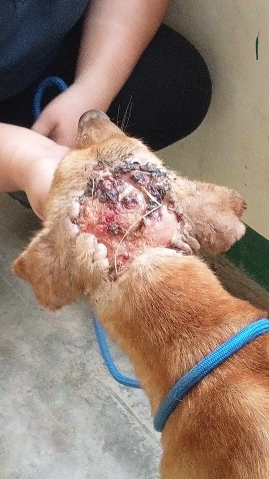 On 13 August 2023, we took in a stray that hangs around a school in Valencia and has a large head wound. It's very similar to the wound Teo had.
