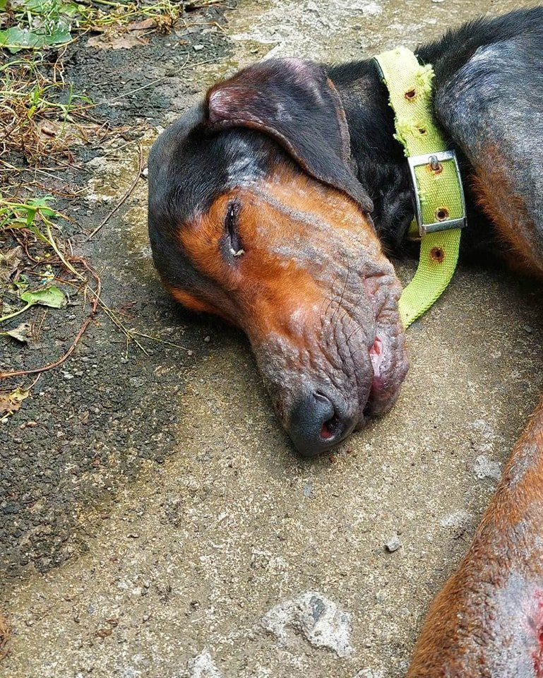 On 3 March 2023, we found Dobi lying by the side of the road, with an old collar on his neck, showing he had simply been left there to die.