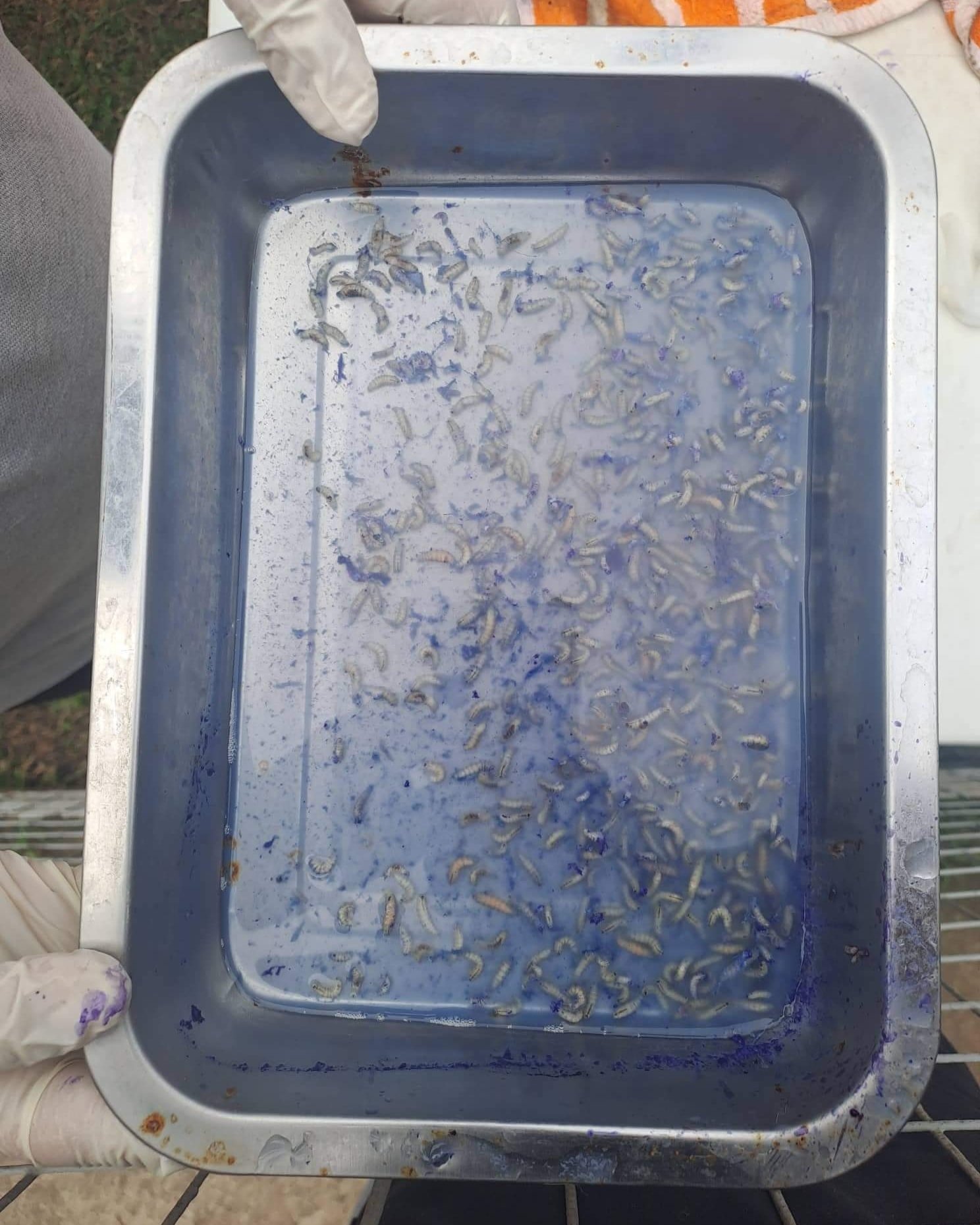 We took out over 100 maggots, cleaned and dressed the wound, and as there were still maggots buried under his skin, we gave him an injection of Ivermectin to kill them.
