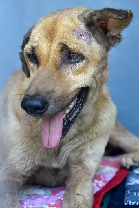 Jimmy was rescued from Bacong in May 2022, close to death, with a very ugly open wound on his head which was infected and crawling with maggots.  He would have died if we didn't rescue him immediately.