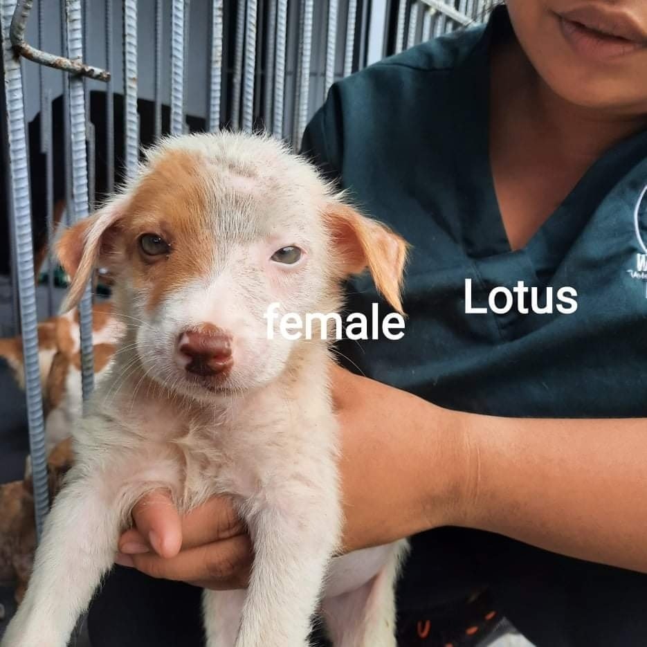 Abandoned along with 5 other pups on the beach by someone just leaving the Philippines, Lotus was crawling with fleas and very small. Four of her siblings have been adopted to date, leaving her and sister Lana to go.