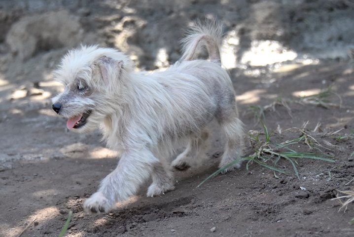 Rescued in a very poor condition, Merlin was the youngest of three dogs rescued in June 2022. The older dogs, Milly and Mabel, may well have been used to breed, as they all appear to be a popular small dog breed known as a Maltese. They are all now released from their uncertain futures and have the opportunity to fulfil their lives with a loving family.