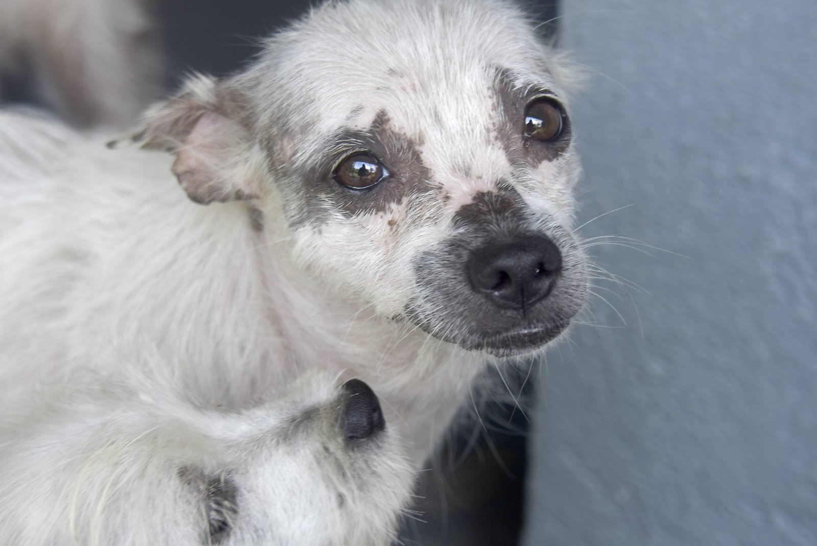 Rescued on 4 June 2022, Millie was one of three seemingly "pedigree" dogs rescued from squalid caged conditions. Together with Merlin and Mabel, Millie had very bad mange and was suffering from malnutrition. It's likely she is the mother or Merlin, as she is very maternal towards him.  It's very unlikely Merlin was her first litter, as dogs like these are kept for breeding.