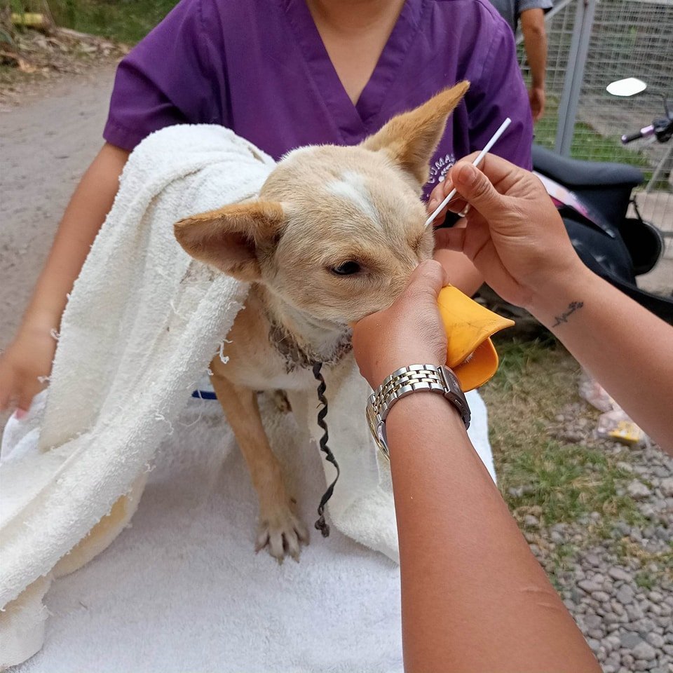 On 13 April 2023, we rescued a female dog with nylon rope deeply embedded in her neck.