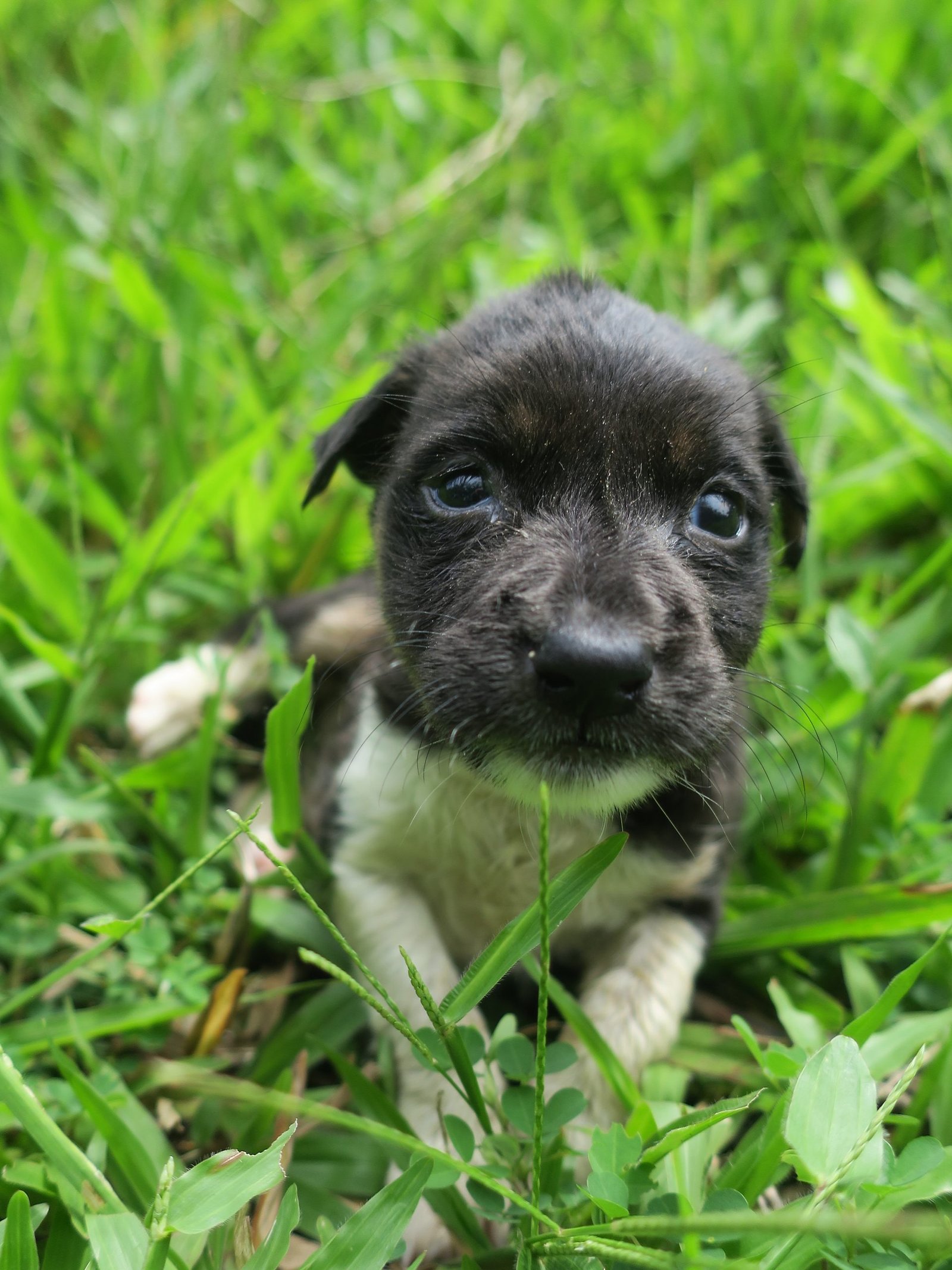 On 20 July 2022, during heavy rain, we got a report of a small puppy sitting in the grass soaked through to his skin.  We usually ask reporters to foster puppies and then post them for adoption on Dumaguete Pet Care and Adoption as puppies are easy to care for. But there was no one to take the puppy so we took him in.