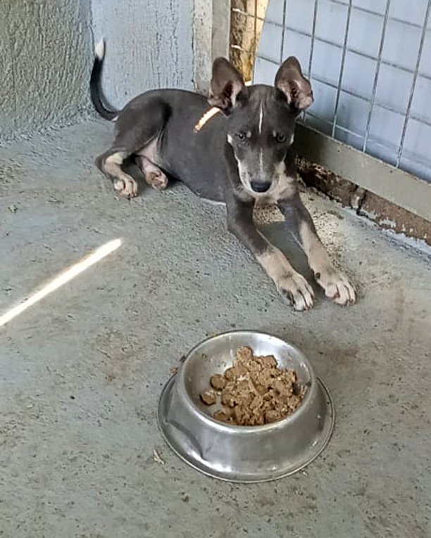 Rescued by our volunteer Pati in mid-Mach 2022, Trudy was in a poor state, and tested positive for the potentially fatal disease Parvovirus. We have had a number of very distressing outbreaks of Parvo in the last few years, and we now screen all our new rescues for this terrible virus, and take appropriate actions of remedy and isolation to ensure we don't have any future epidemics.