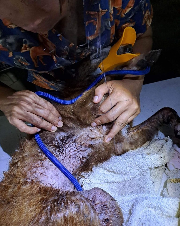 After full tests on arrival at the Sanctuary, we needed a vet consult the following day to assess the nature of his injuries. He has injuries to his legs, lots of ticks, and his liver was inflamed, but the dislocated vertebrae were the cause of his immobility. We hope that with care and laser treatments, which promotes bone and cartilage growth around the dislocation, he will get back on his feet again. Any financial help with his treatments, which will amount to $500 or more, will be most welcome. You can visit our Donate page for information on how to contribute to the ever-growing expense of looking after the welfare of 160+ animals.