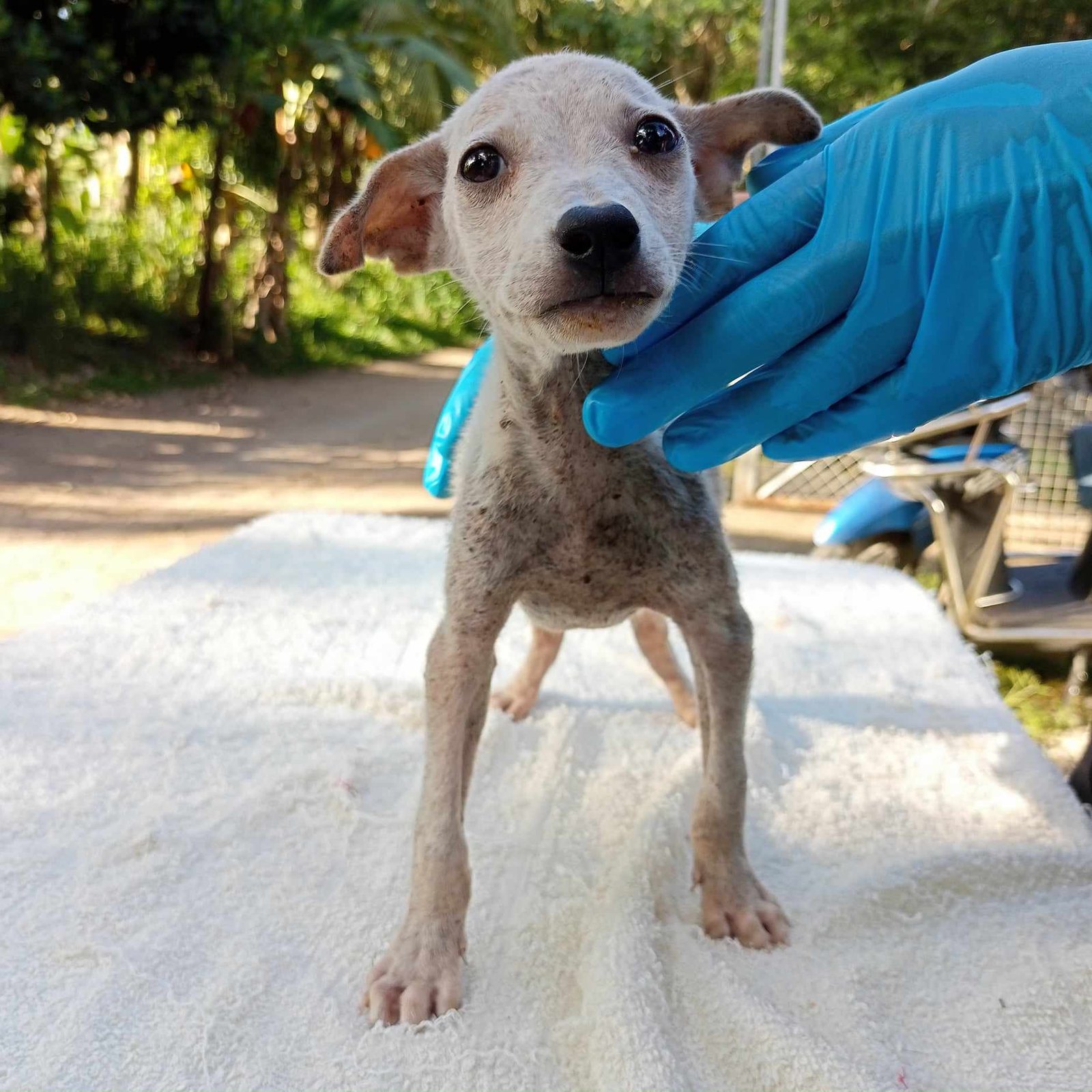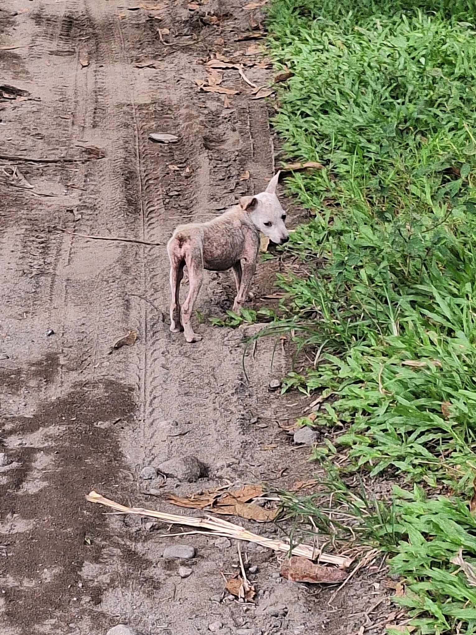 On 14 October 2023, one of our regular volunteer walkers and friend of the Sanctuary Richard found a tiny puppy wandering by itself during one of his regular walks with the Sanctuary dogs.  He bought it back to the Sanctuary and we took him in and began to treat his mange and general poor health.