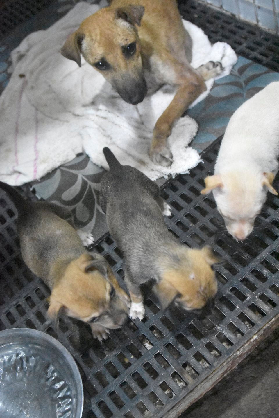 In August 2023, a mother dog was dumped illegally outside the Sanctuary, along with her three young puppies.  We could only do what we always do - somehow find space and funds to help them.  We called the mum Nesta.