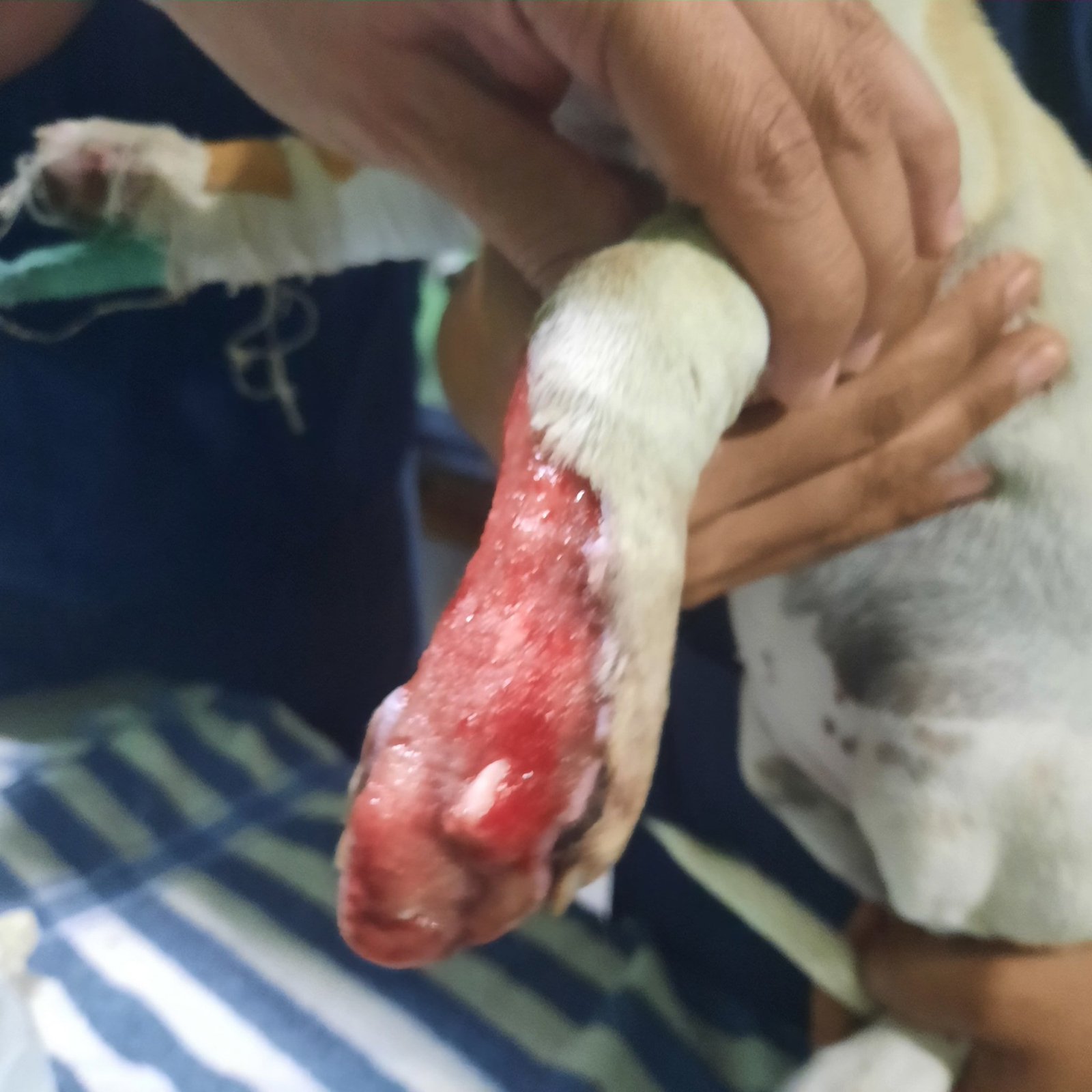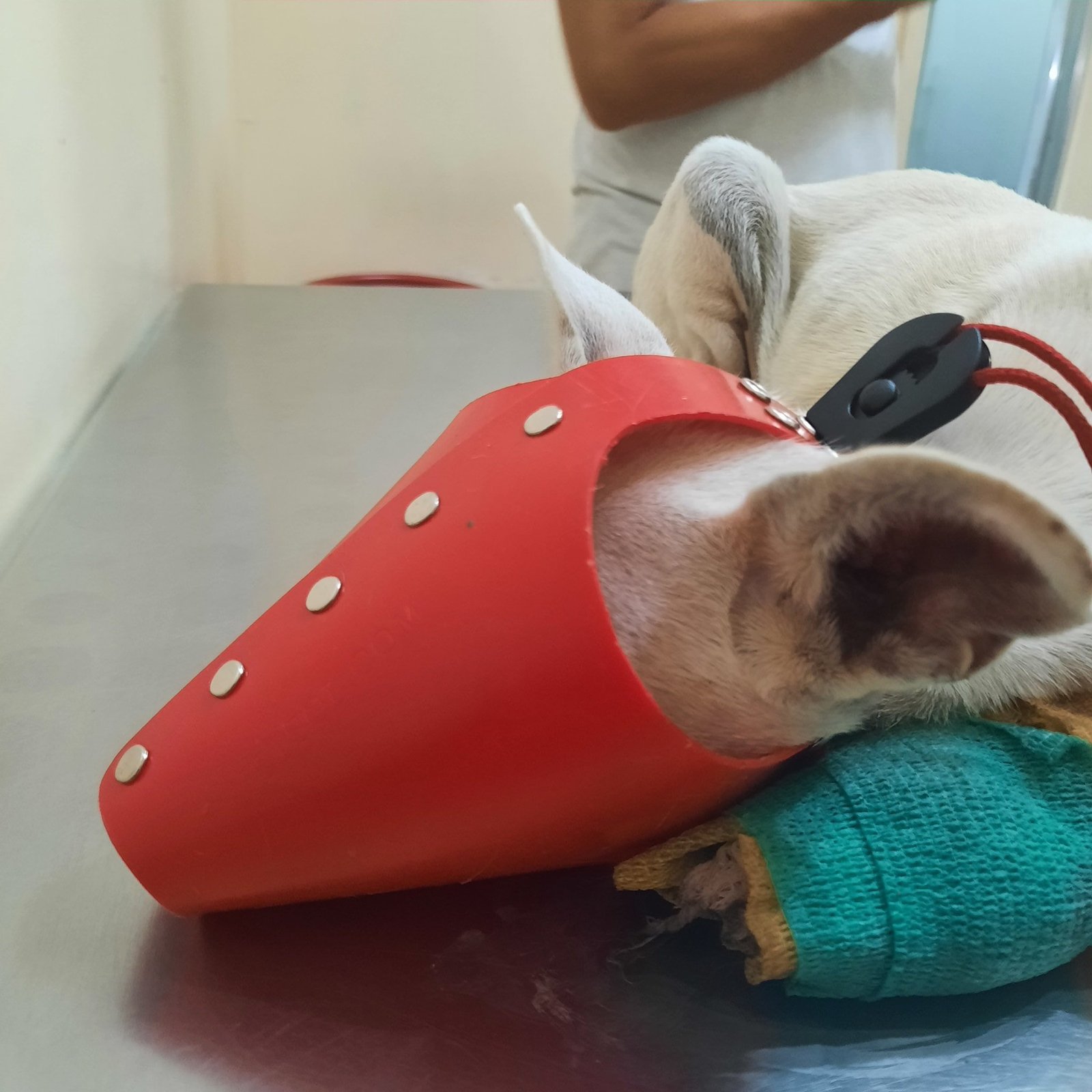 As she was young, we were hopeful she would heal completely, but it was a long and expensive process. We needed to change her bandages and apply manuka honey twice per day. We had to put a full muzzle on because she was so aggressive due to the pain, but it was only for the examination.