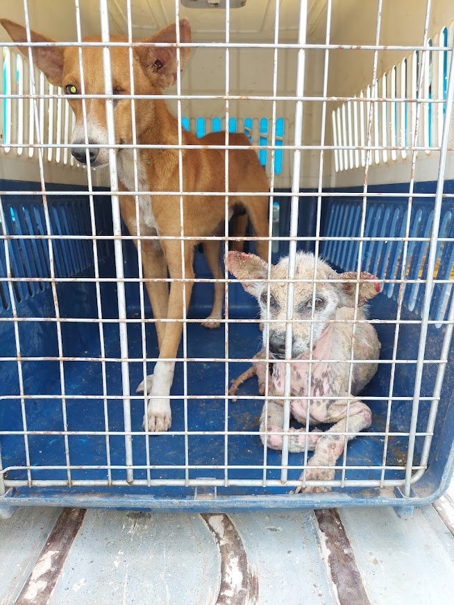 Joy was one of seven adult dogs rescued from being euthanised in early December 2022. Joy was practically hairless and at death's door, quite literally, but she's now got another chance at life. She still has a sweet nature and is very friendly and trusting, despite everything she's been through.