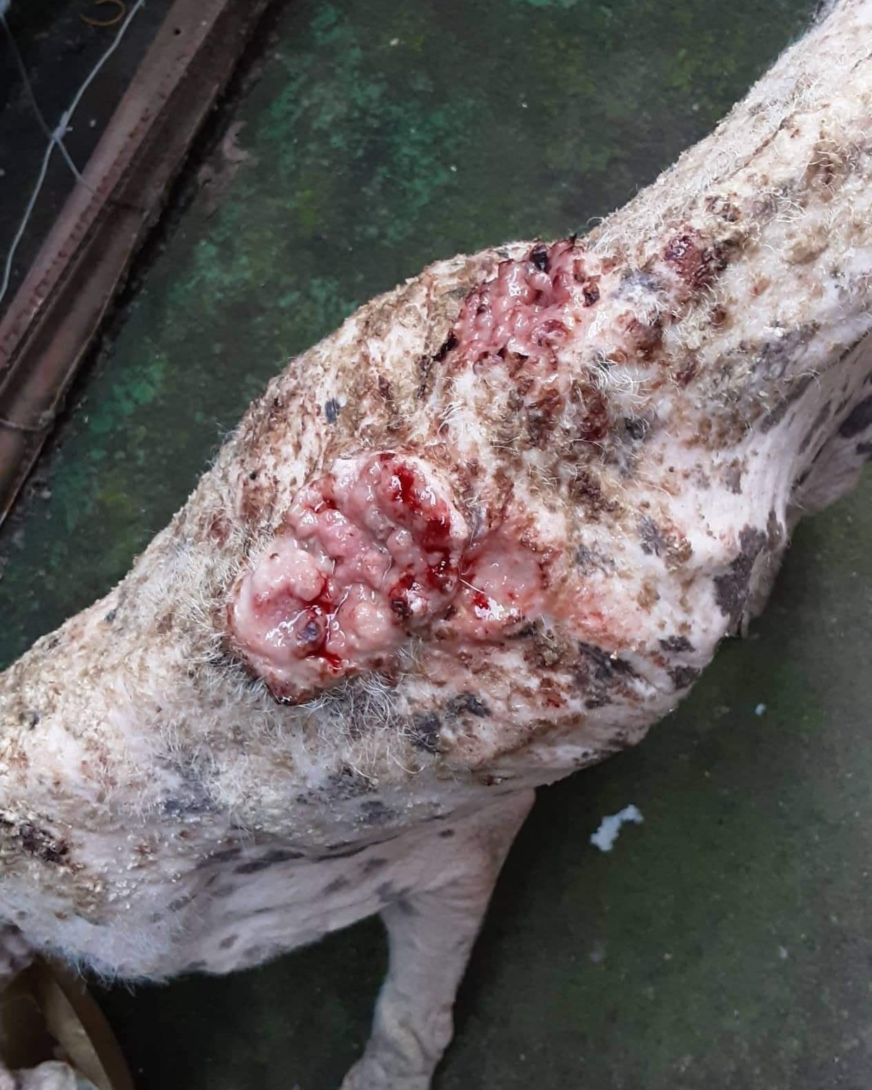 We rescued her just a month ago as she was reported with terrible wounds all over her body. When we brought her to the Sanctuary and had her assessed by the vet we found out that she had multiple mast cell tumors. Unlike TVT tumors, mast cell is extremely difficult to treat. It responds best to a chemo called vinblastin - which luckily we had in stock. After two sessions there was no improvement and there were new tumors popping up.