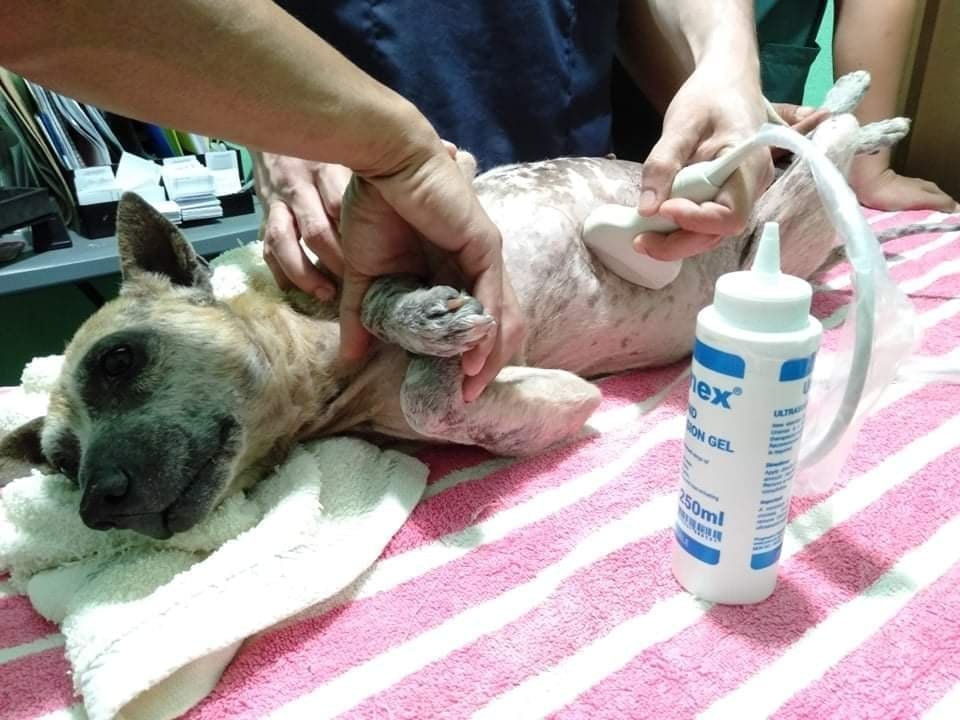 In late March however, Salvador's stomach became enlarged so Doc Pierre did an ultrasound on him and discovered that he had something called Ascites - fluid in the abdomen. He drained the fluid and also we found out he has stones in his bladder.  Ascites can be a result of many things, kidney failure, heart failure, liver failure.