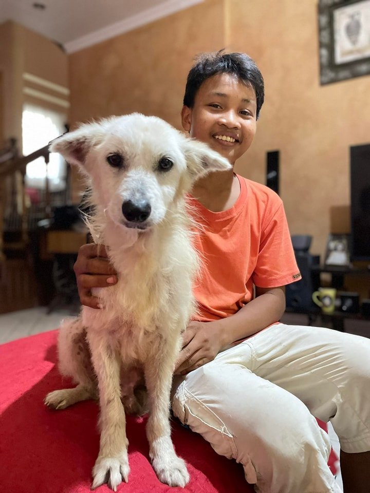 We took him in, treated him, neutered him, vaccinated him and to our utter delight Olga offered to adopt him. Olga and Noel's house is turning into a dog retirement home!!