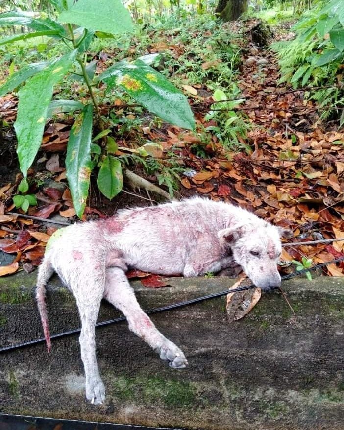 On 27 March 2022, we got reports of a dog in a bad state near Port Royale water park.  We didn't have transport so we were fortunate that Dong one of our volunteers was available.  We rescued the dog and called him Victory or Vic for short.