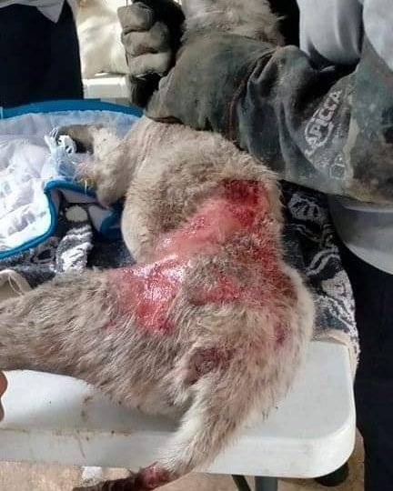 It appears he was hit by a car as he has bad lacerations on his back and tail.